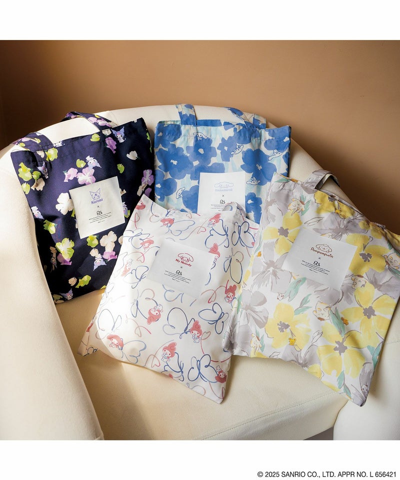 シナモロール、ポムポムプリン、マイメロディ、クロミのそれぞれのイメージに合わせたオリジナルデザインのトートバッグ。