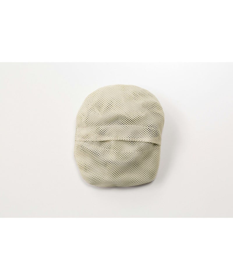 頭部裏側は通気性の良いメッシュ素材になっており、風で飛ばされることを防ぐ調整可能なあご紐付き。