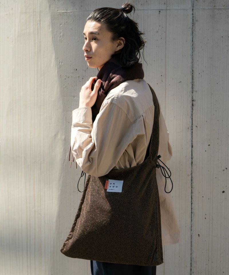 バッグの両サイドにあるドローコードで持ち手の形状を変えることができ、持ち手の長さやくしゅっと感の調節が可能です!