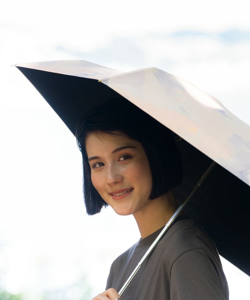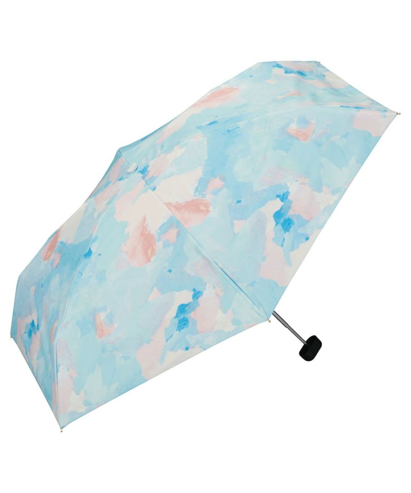 可愛い かわいい 大人 大人可愛い 使いやすい 上品 絵の具 アート テクスチャ― 水彩風 晴雨兼用 UVカット ブルーライトカット 紫外線カット 白 青 水色 ブルー ホワイト 日傘 日がさ 完全遮光 遮熱 折り畳み傘 折りたたみ傘 折畳み