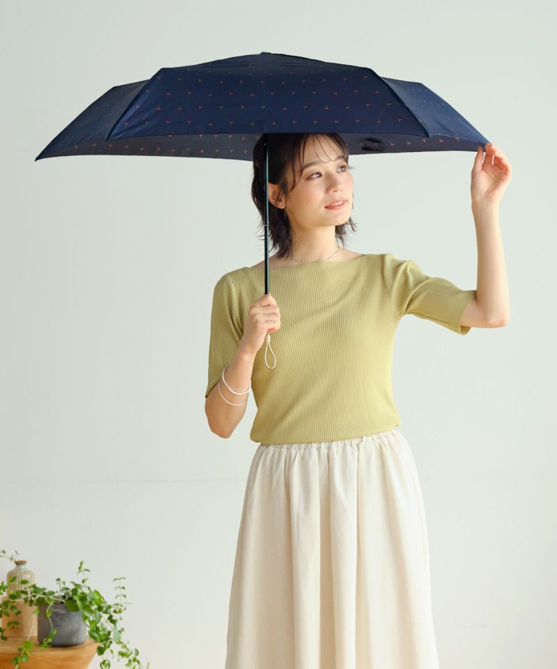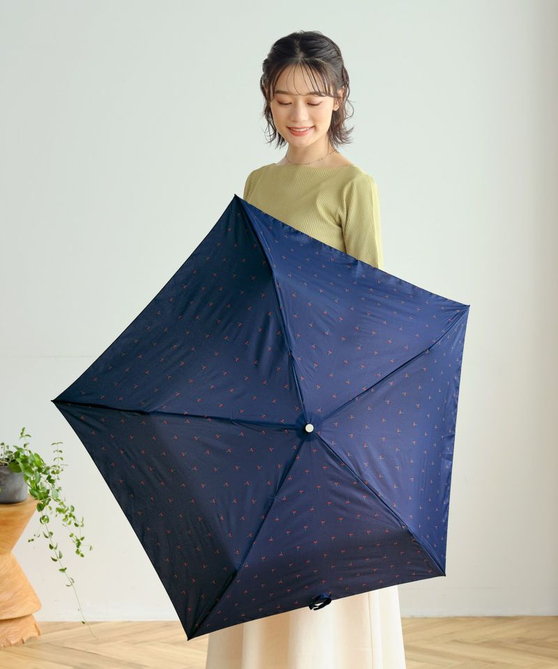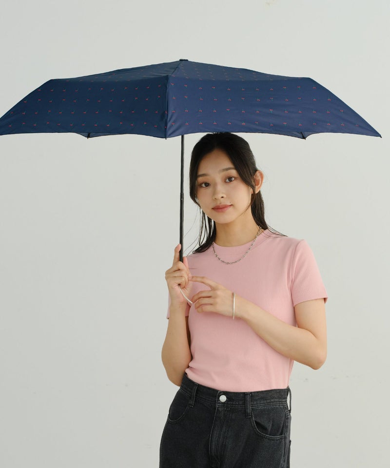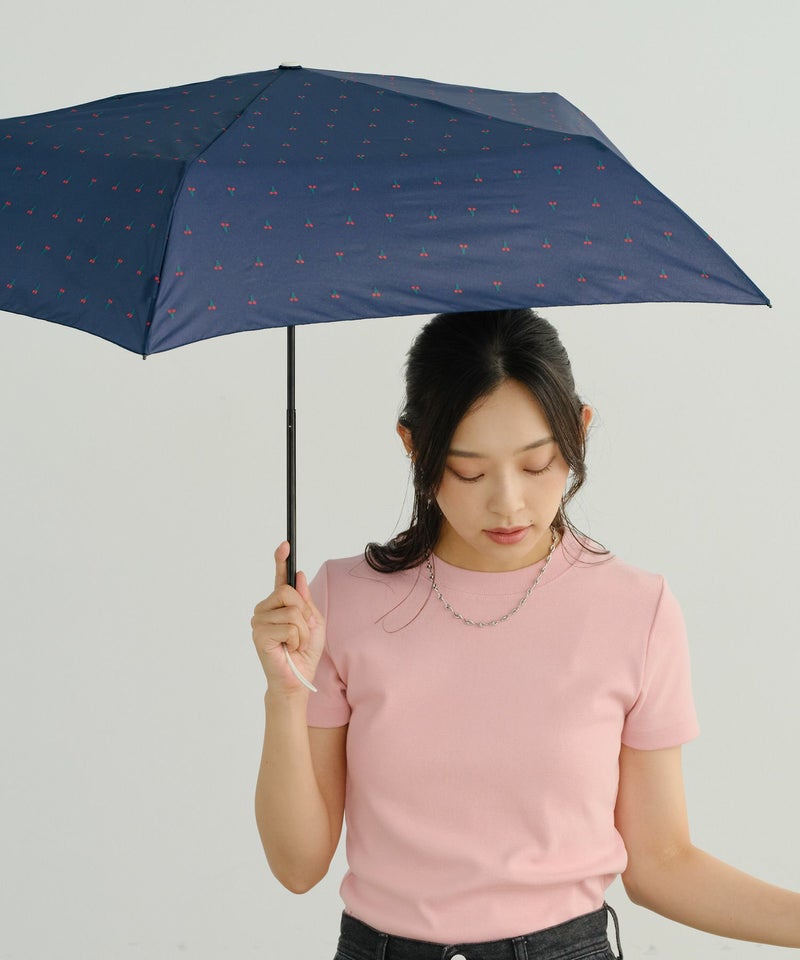 小さなチェリー柄がレトロ可愛い、超軽量の折りたたみ傘。
