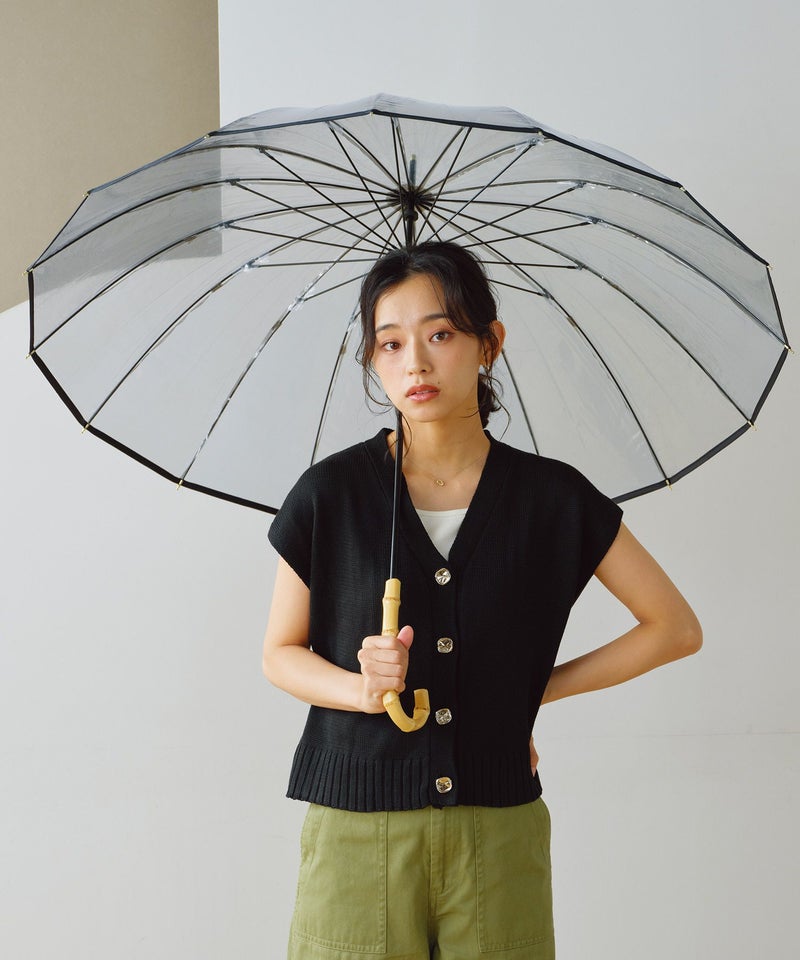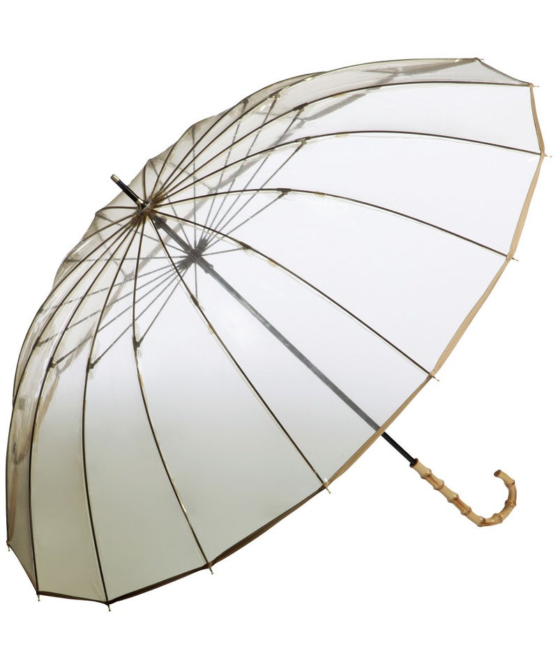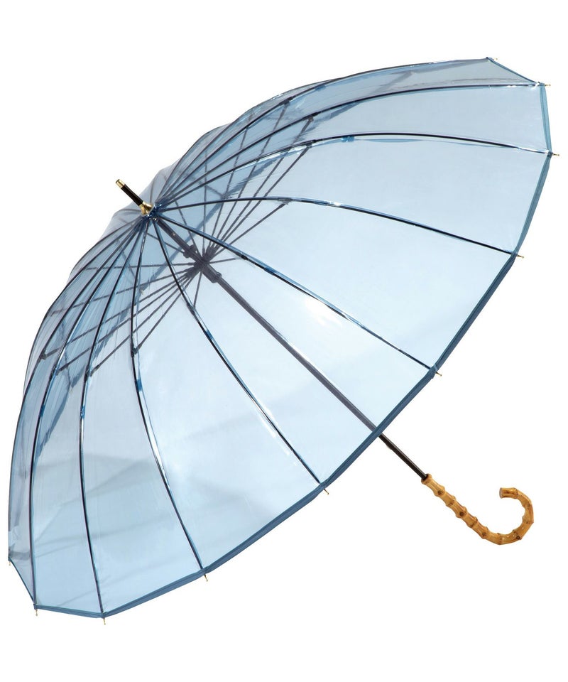 長傘 長雨傘 レディース 丈夫 おしゃれ ブランド 女性 長く使えるビニール傘 頑丈 バンブーハンドル 綺麗 透明 クリア シンプル かわいい かさ 可愛い 多骨傘 上品 丈夫 エレガント カジュアル スタイリッシュ ブラウン 茶色 ブルー 青 手開き 60cm スナップボタン 無地
