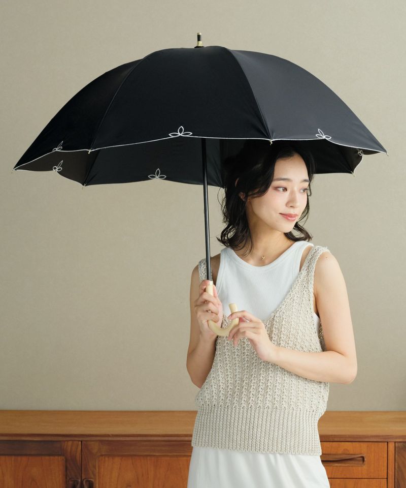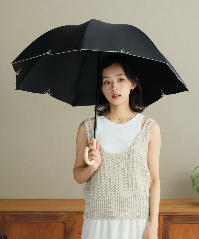 可愛い 完全UVカット 遮光率100% 遮熱 防水 晴雨兼用 ドーム型 刺繍 木製ハンドル シンプル