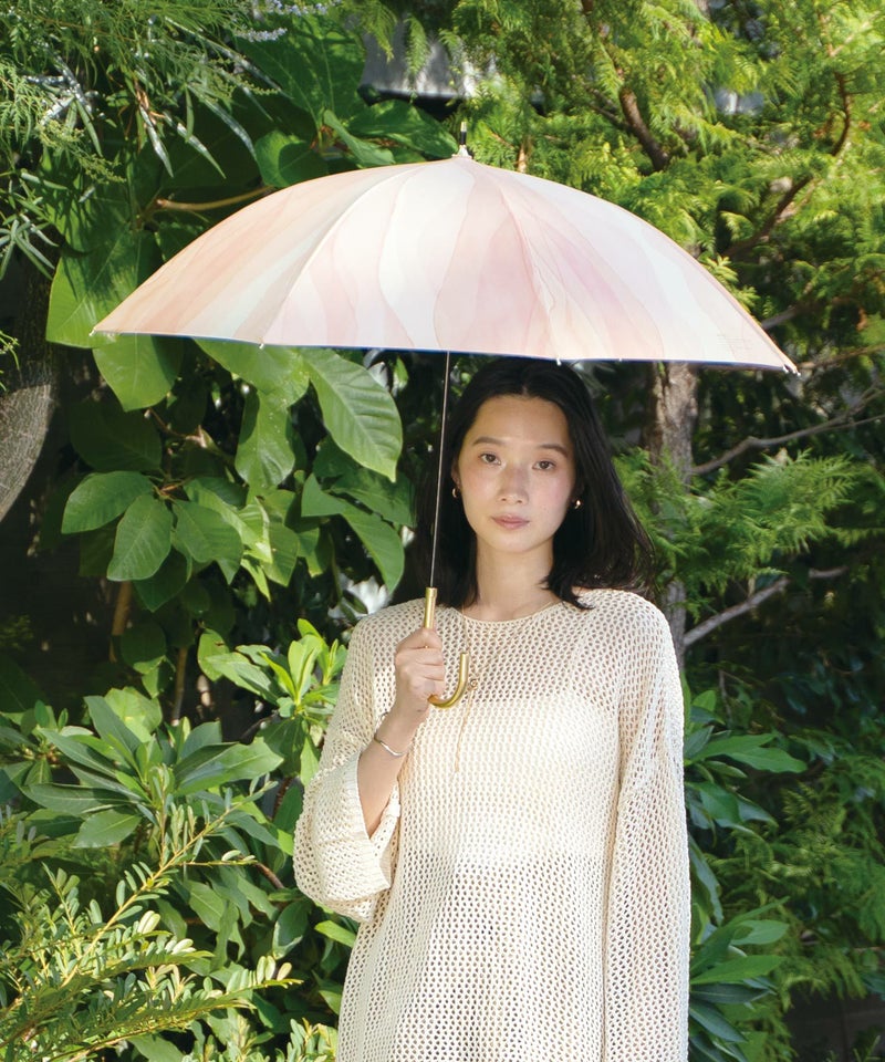 水彩絵の具で描いたような、透明感あふれるアート柄の日傘