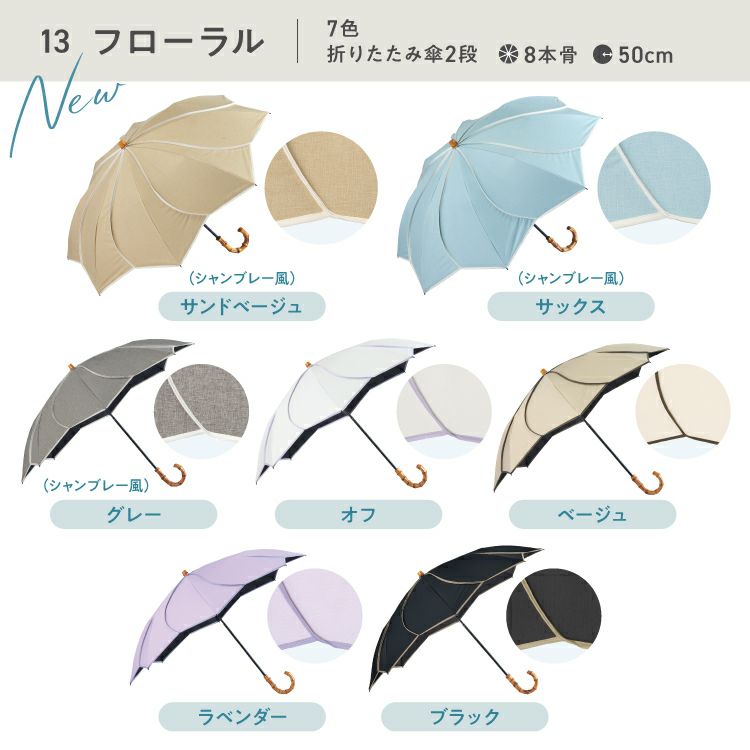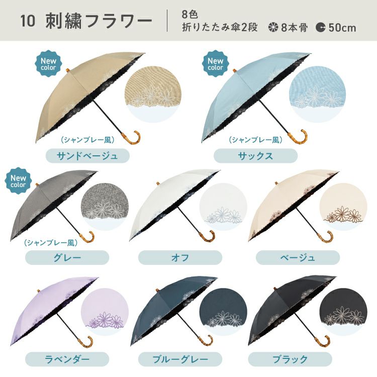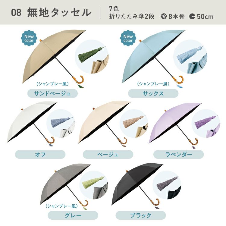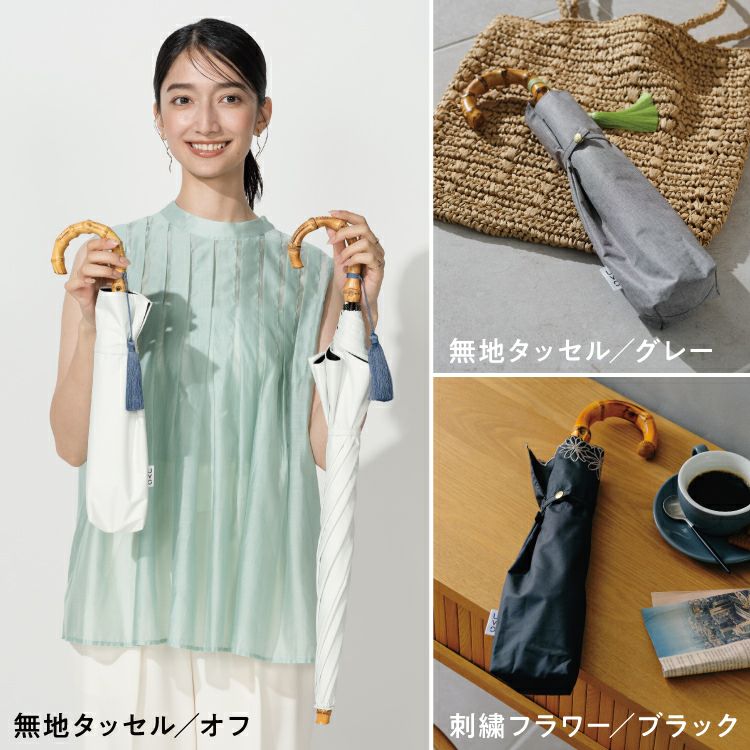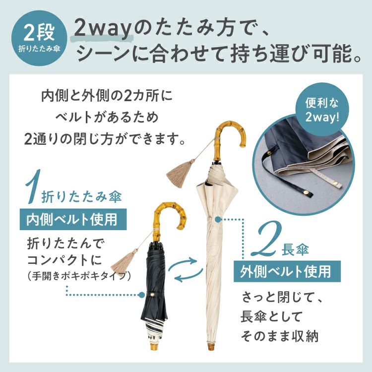 紫外線 UV対策 レディース 女性 バンブー ブランド 遮熱 撥水 UPF50+ ブランド おしゃれ 長折兼用 長傘 折りたたみ傘 2WAY 2段式 可愛い かわいい 50cm シンプル 手開き 無地 タッセル スタンダード 通勤 通学 耐風 コーディネート オフィス カジュアル 日常使い 耐久性 ハイスペック オフホワイト ベージュ ラベンダー ブラック サックス 大人っぽい 木陰 紫外線 UV対策 切り継ぎ バイカラー 刺繍 フローラル フリル フェミニン ブルーグレー