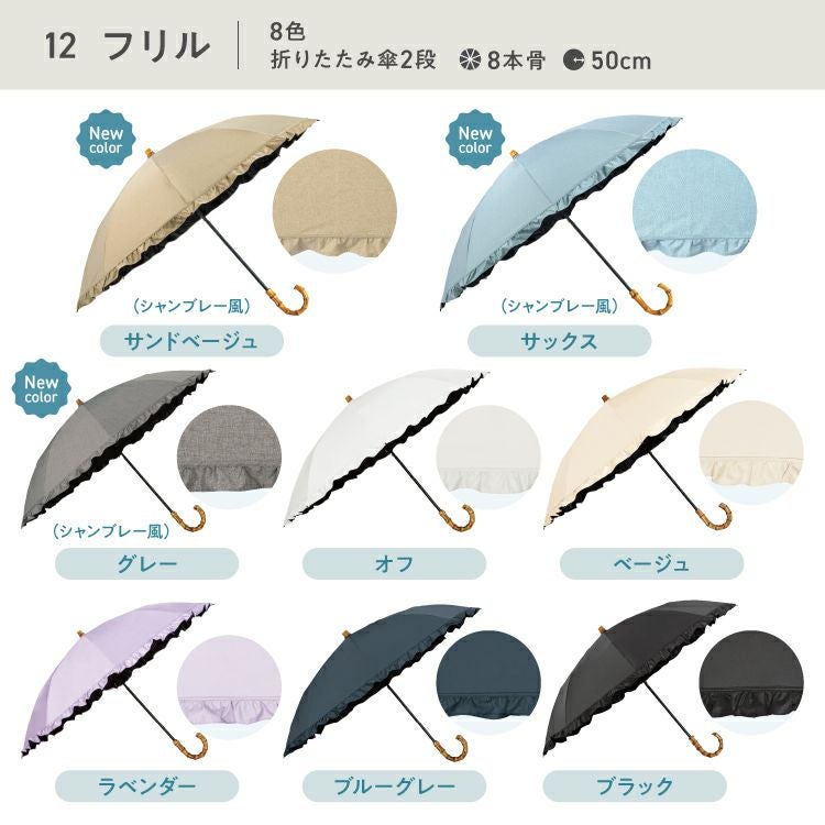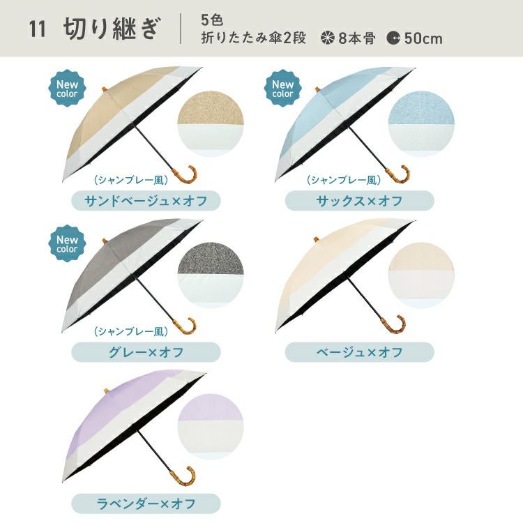 紫外線 UV対策 レディース 女性 バンブー ブランド 遮熱 撥水 UPF50+ ブランド おしゃれ 長折兼用 長傘 折りたたみ傘 2WAY 2段式 可愛い かわいい 50cm シンプル 手開き 無地 タッセル スタンダード 通勤 通学 耐風 コーディネート オフィス カジュアル 日常使い 耐久性 ハイスペック オフホワイト ベージュ ラベンダー ブラック サックス 大人っぽい 木陰 紫外線 UV対策 切り継ぎ バイカラー 刺繍 フローラル フリル フェミニン ブルーグレー