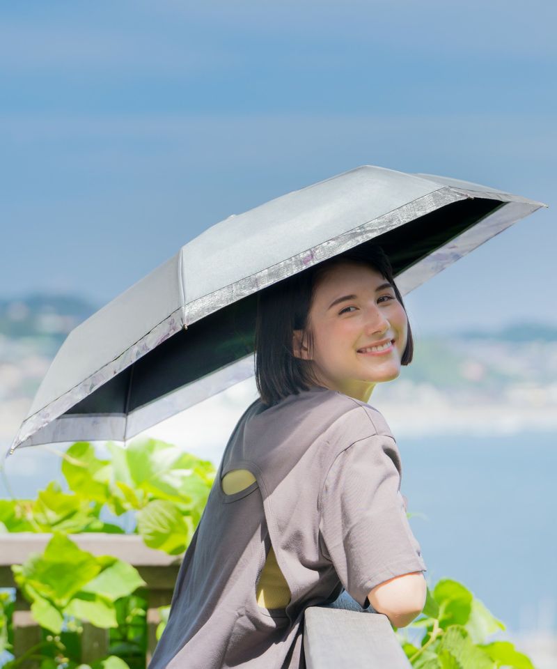 オーガンジー生地がポイントになりながらも、派手になりすぎないテイストの柄なので、どんなファッションにも合わせやすい日傘です。