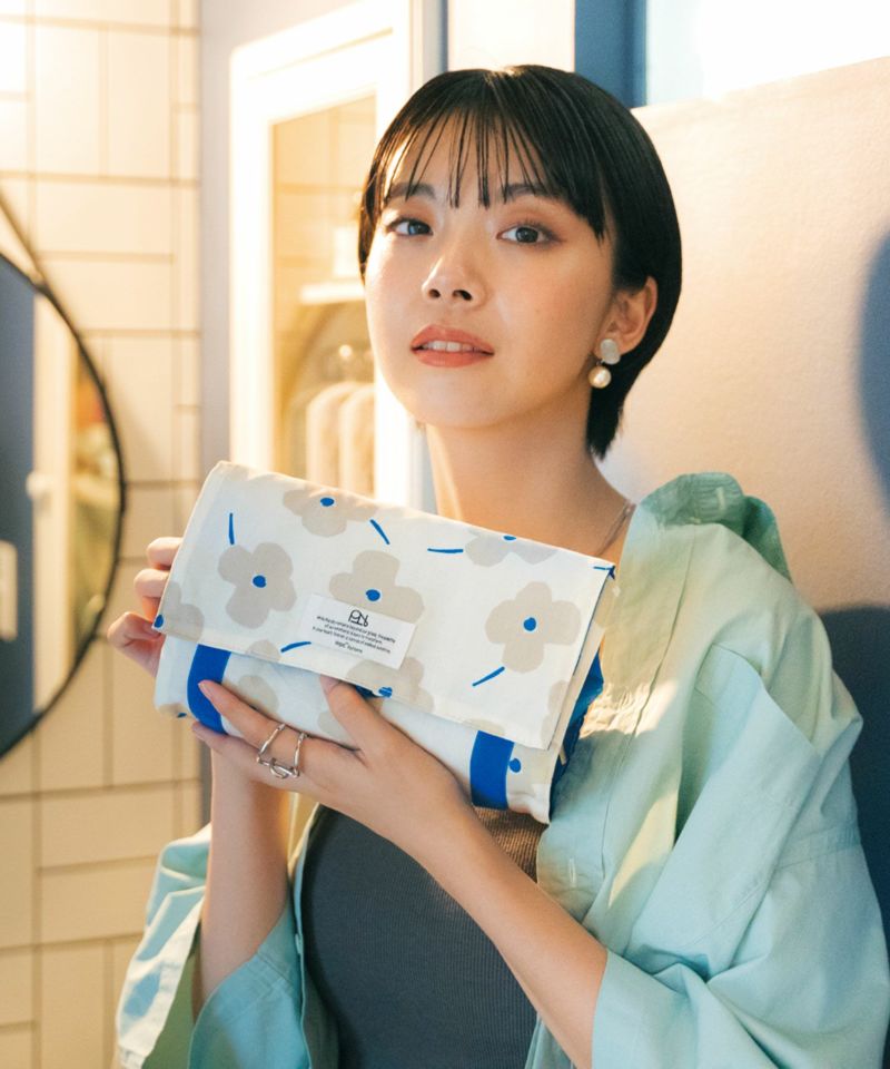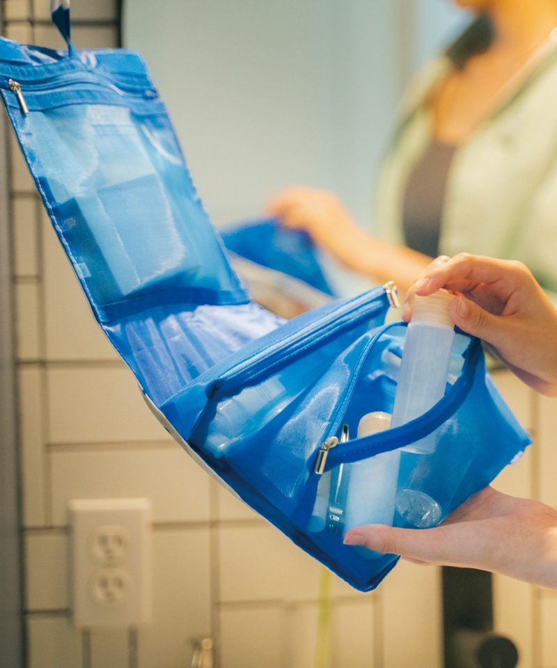 フェイスパックが入るフラットポケット、大小のポケットが付いていて入れたいアイテムのジャンルに分けて収納できます。