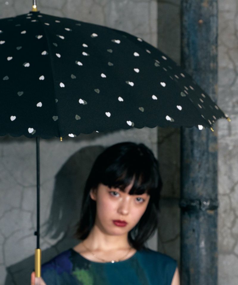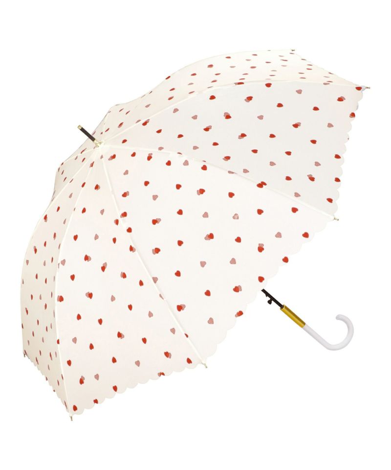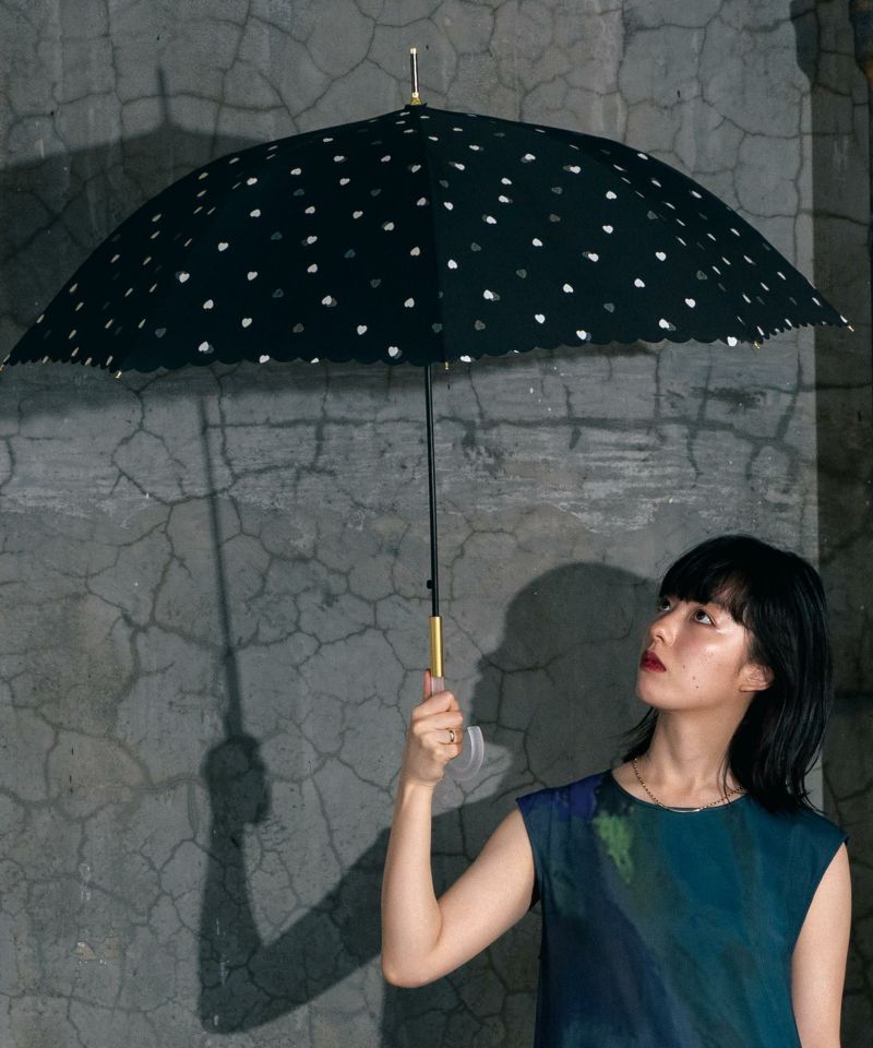 小振りなハートが散りばめられた、大人可愛いデザインの雨傘。