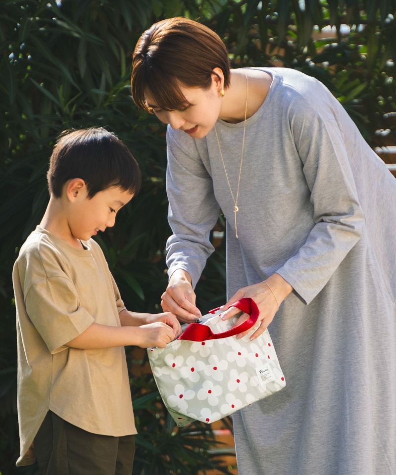 ランチボックスや 500ml のペットボトルがたっぷり収納できる保冷ランチバッグ。
