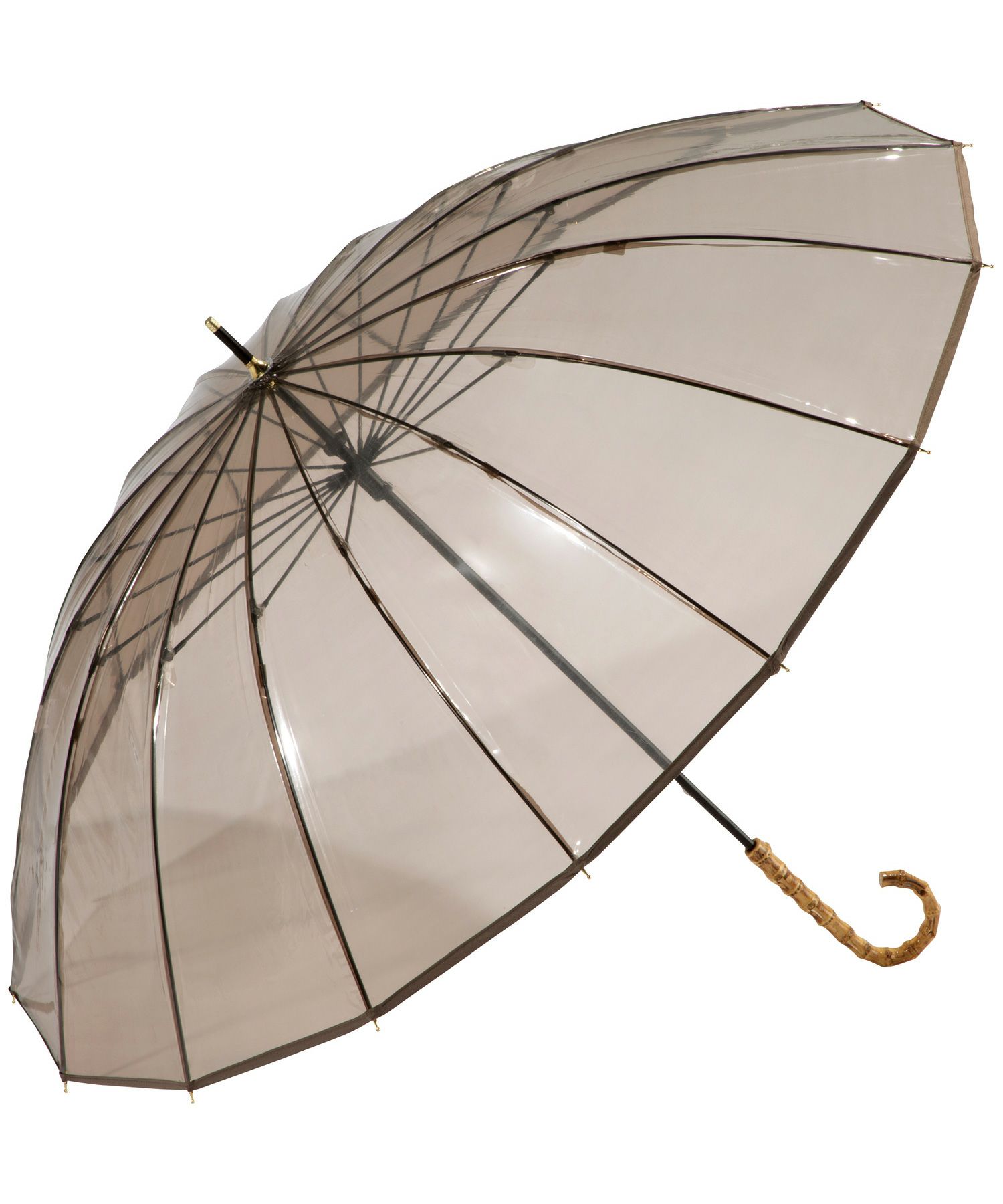長傘 長雨傘 レディース 丈夫 おしゃれ ブランド 女性 長く使えるビニール傘 頑丈 バンブーハンドル 綺麗 透明 クリア シンプル かわいい かさ 可愛い 多骨傘 上品 丈夫 エレガント カジュアル スタイリッシュ ブラウン 茶色 ブルー 青 手開き 60cm スナップボタン 無地